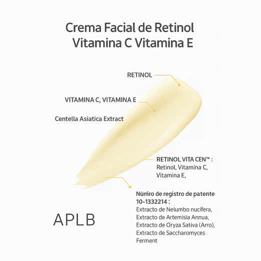 Crema hidratante, energizante y revitalizante de textura ligera que combate los signos de envejecimiento, formulada con un 21.6% de RETINOL VITA CEN™, un ingrediente patentado que utiliza la sinergia del Retinol y las Vitaminas C y E, ingredientes con propiedades antioxidantes, despigmentantes y humectantes; y Centella Asiática, un hidratante y calmante, para otorgarle beneficios a la piel de forma eficaz y suave.